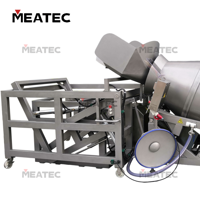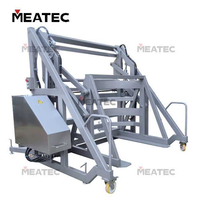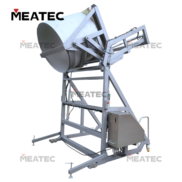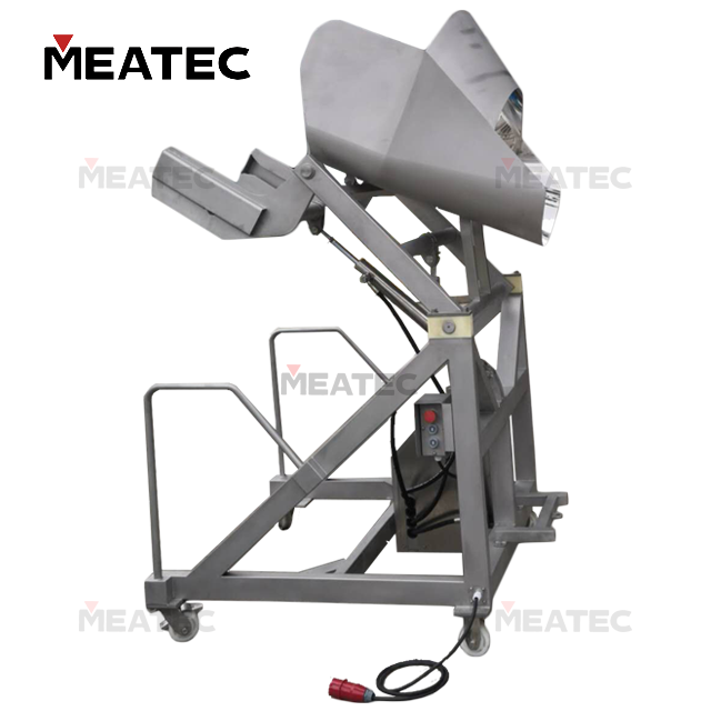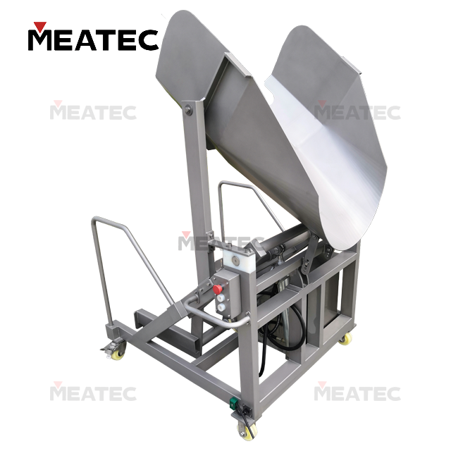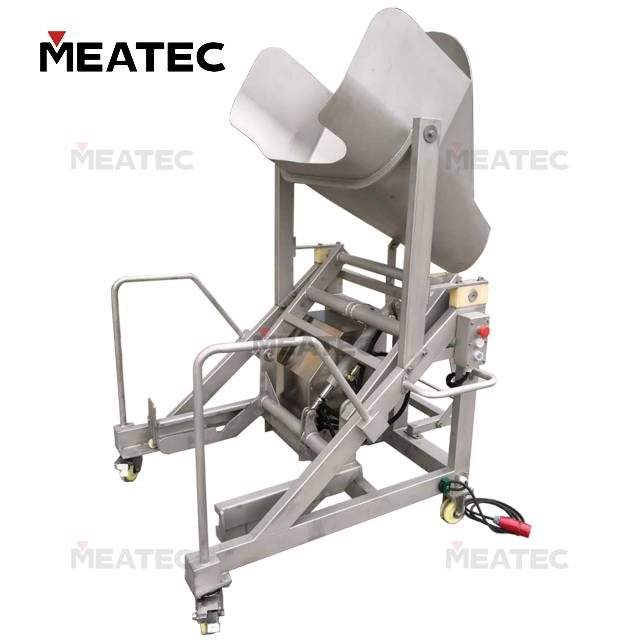 The TSY Series Hydraulic Buggy Dumper is used for feeding materials in conjunction with vacuum tumblers, and can also be matched with other equipment for feeding purposes. Driven by dual hydraulic cylinders, the machine realizes translational lifting followed by flipping and dumping, which can meet the feeding operations of both fluid and solid materials.