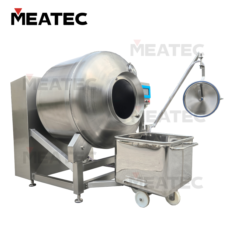 The GRH Series Vacuum Tumbler is suitable for central kitchens and medium-to-large-scale factories. It is used for tumbling and marinating sausages, hams, and bacon, as well as for marinating, seasoning, and mixing products such as sliced meat, fish fillets, poultry, and vegetables.