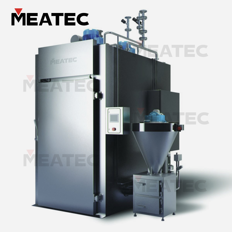 The YX series smoke ovens feature functions including cooking, AT cooking, drying, coloring,smoking, and baking, and are suitable for the thermal processing of Western-style sausages, hams, bacon, and other products.