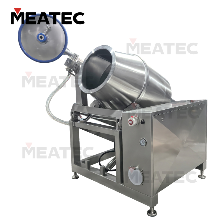 Vacuum material suction: the function of vacuum suction of brine and powder during the tumbling process.