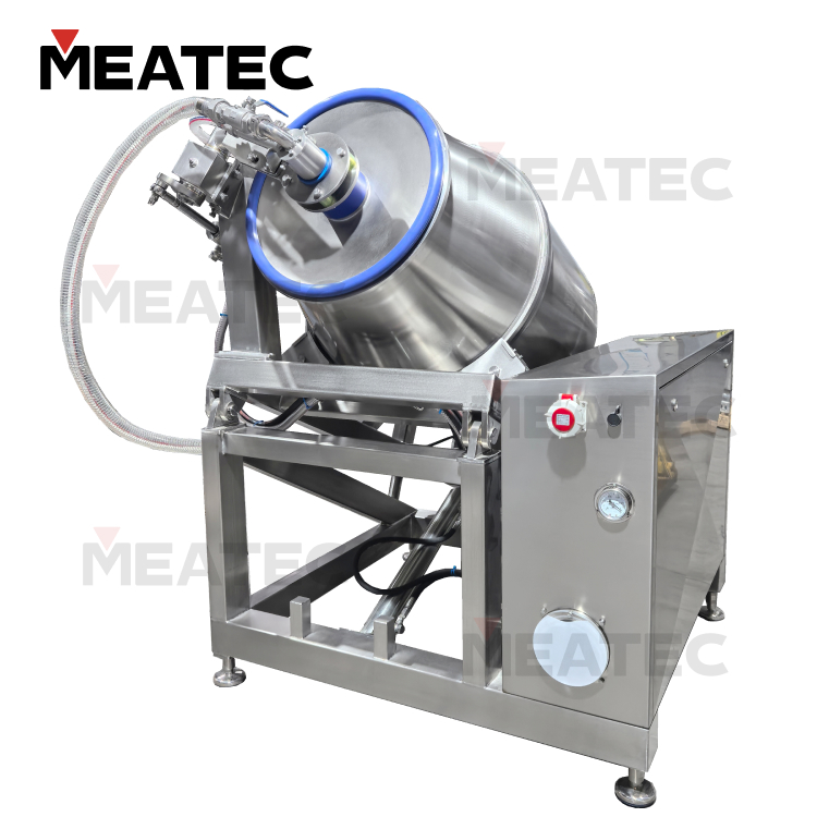 Vacuum material suction: the function of vacuum suction of brine and powder during the tumbling process.